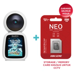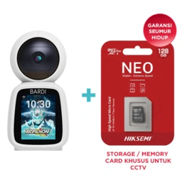 IP Camera PTZ Indoor with Video Call Screen menawarkan pengawasan canggih dengan layar untuk melihat langsung dari kamera ke HP. Fitur video interkom dua arah, deteksi suara/gerakan, dan komunikasi audio duplex, dan slot microSD hingga 128GB.